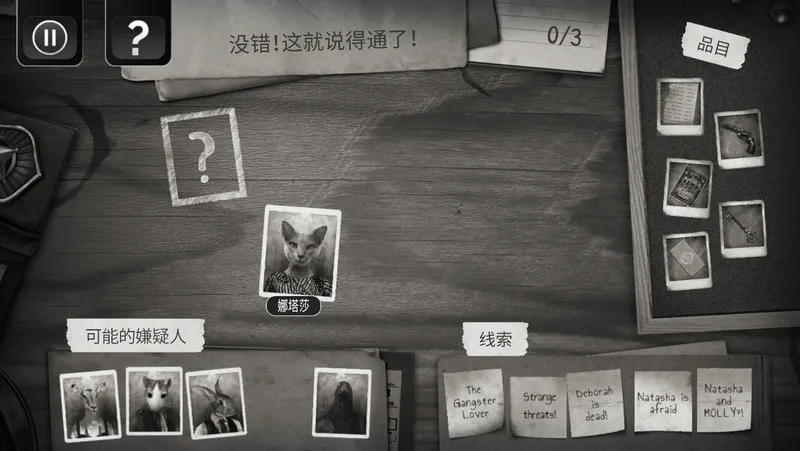 游戏玩法多样,点击动物角色询问获取信息,大胆盘问还能强力得答案,根据侦探仪判断对方是否撒谎,点击物体找隐藏信息。成就系统超有挑战性,比如找到全部10本公鸡神探小说成为“真正的书呆子”;获得所有额外藏品成为“真正的收藏家”;访问所有限定地点成为“探索者”等等。还有很多其他独特成就等你解锁。按照攻略一步步来,你就能在游戏里所向披靡,轻松拿到全成就,享受满满的成就感,赶紧来试试吧!