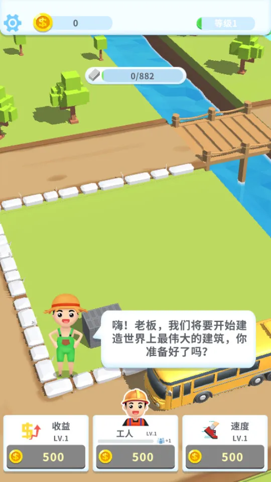 多样玩法助力:能免费获取使用极速搬砖道具空投等随机工具加速建造,可雇佣分级别的工人并合理安排工作使效率最大化,接取任务完成后能获大量金币购买道具,还有多种建筑和有趣玩法等你体验。