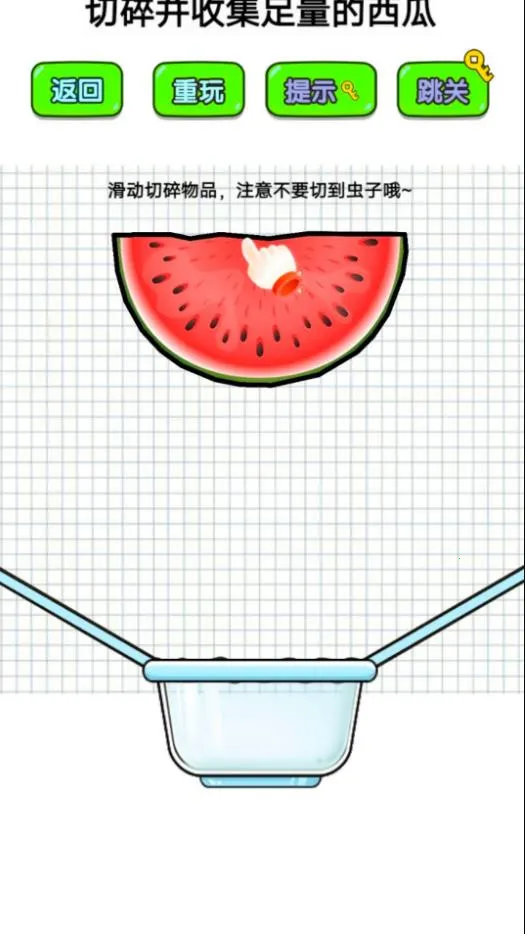 2. 打破常规思维,面对西瓜火腿等物品,规避虫子完成切割收集,还有创意关卡。