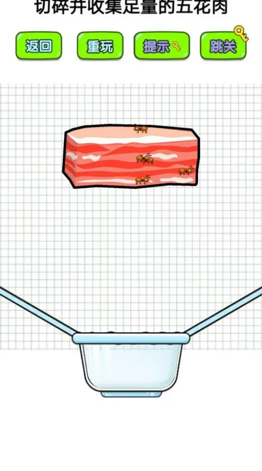 2. 独特玩法设计:玩家要面对西瓜火腿等物品,在规避虫子的同时完成切割收集目标,还有特定形状切割等创意关卡,打破常规思维。