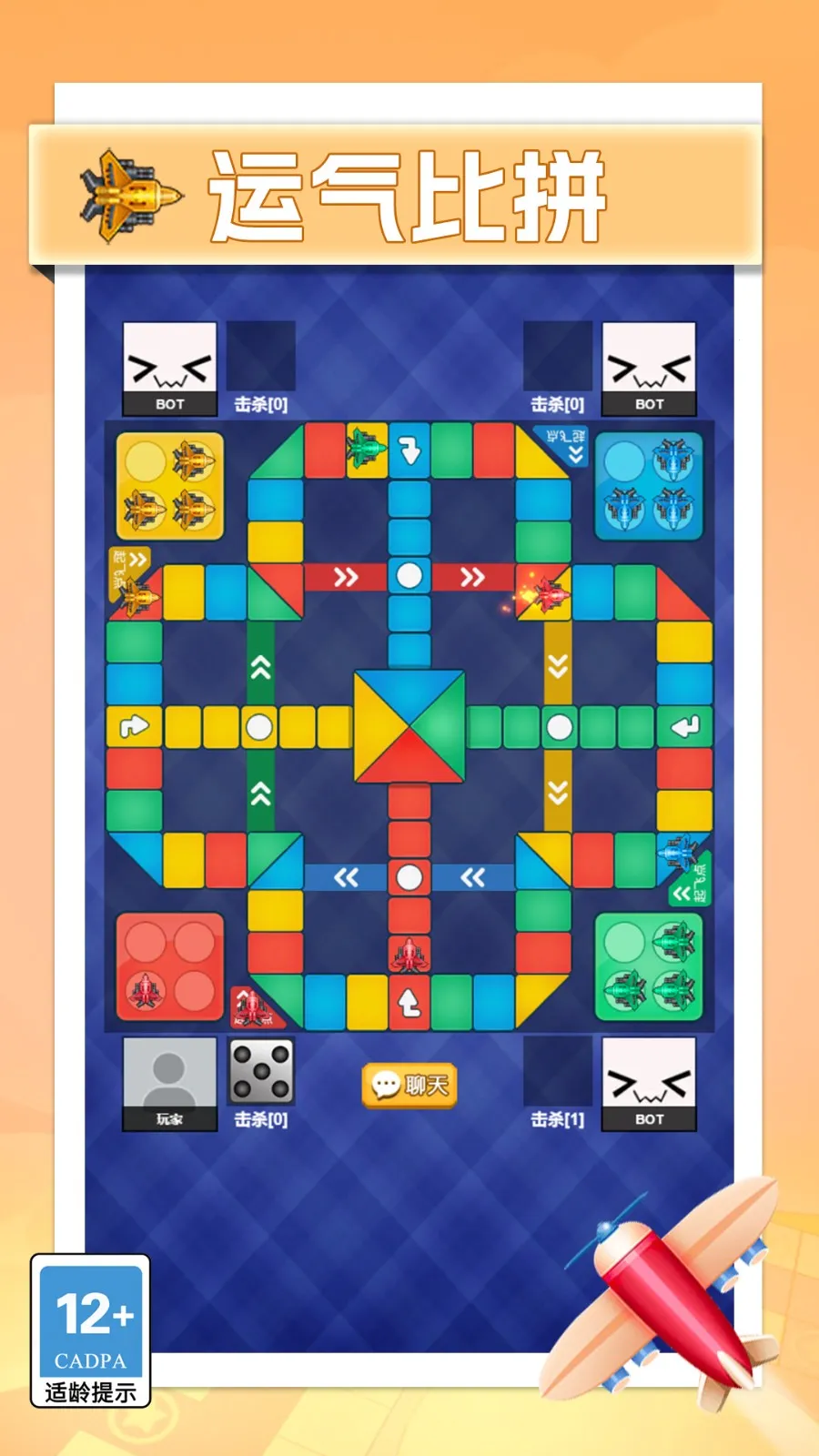 1、经典规则:完整保留传统飞行棋棋盘布局与核心机制,无额外规则改动,带来真实怀旧体验。