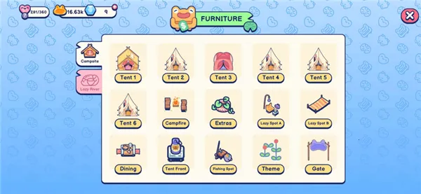 2. 能自由规划露营地布局,随心搭配帐篷、家具和装饰,打造专属景观。