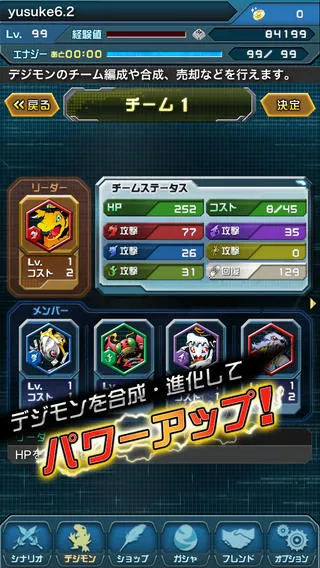 3、通过背包系统为数码兽喂食经验果实、使用药剂恢复HP/MP,并消耗技能点升级必杀技,全面提升战力;