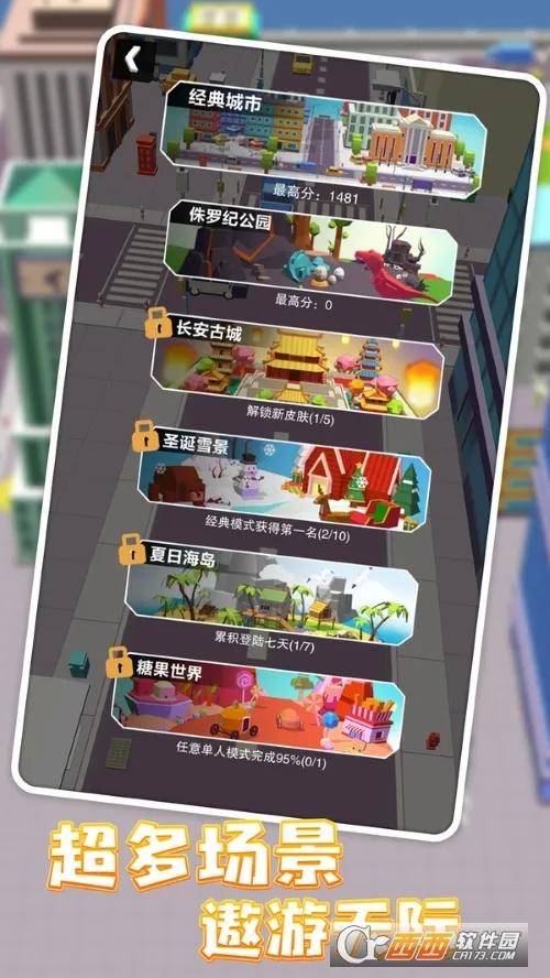 2、置身卡通都市风格画面,展开超有趣的冒险作战,吞噬可让自身变强,体验独特的竞技乐趣。