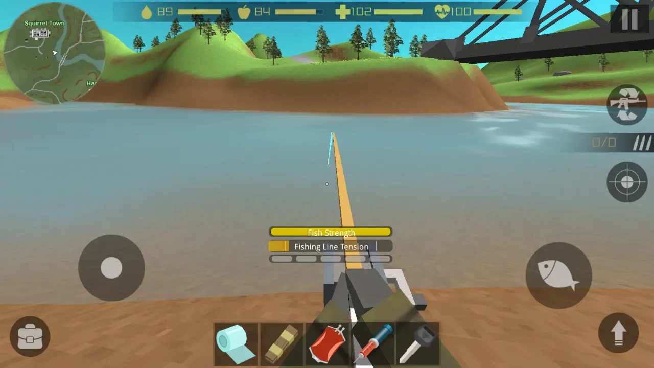 3、具备生存建造玩法,可收集补给、分解物品、制作工具,还能钓鱼、砍树建据点。