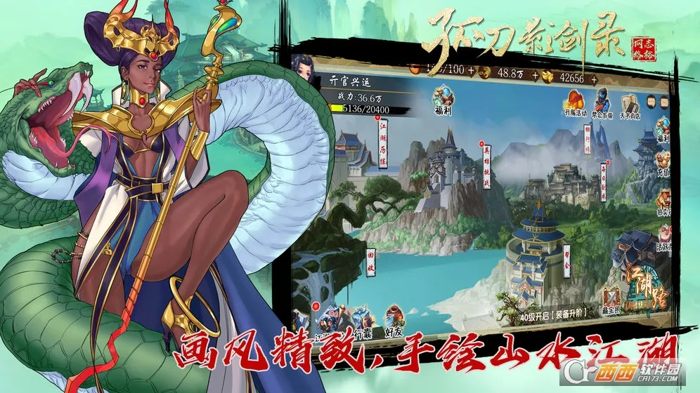3. 精美手绘画风:大量场景为手绘,一笔一触勾勒出浓郁水墨武侠意境,如灯光明灭的酒肆市集、潇潇竹林、大漠孤烟等,带来别具一格的武侠游戏体验。
