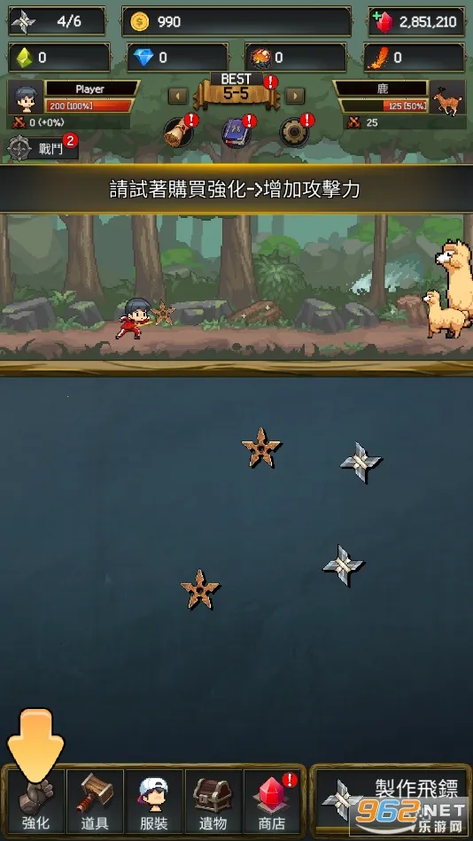 1、操作简单易上手,动动手指就能合成飞镖进行战斗,体验惊险BOSS战。