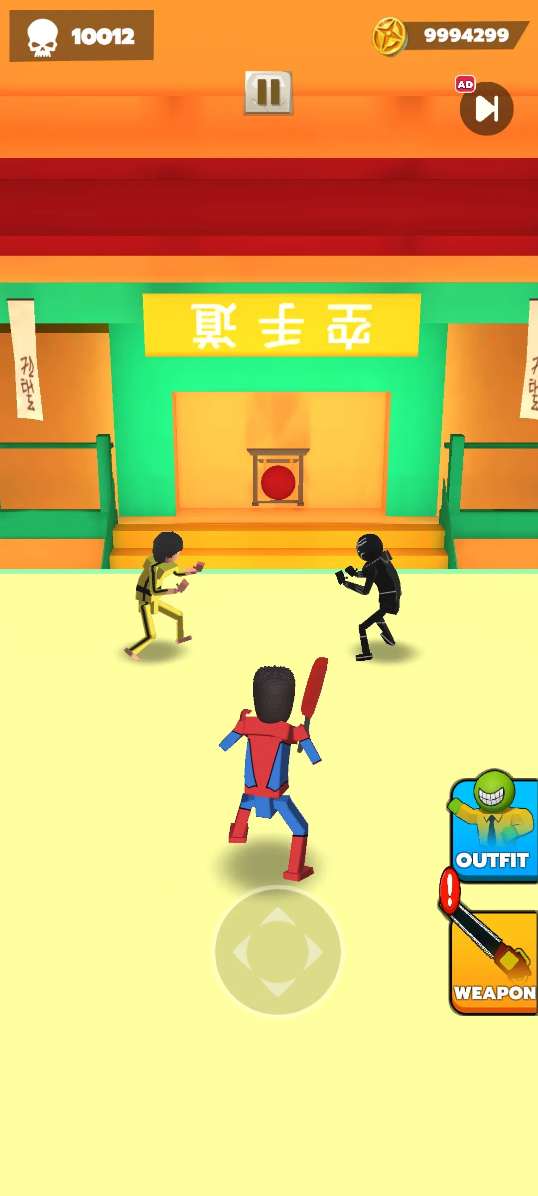《战斗伙伴乱斗狂欢》是一款超有趣的趣味闯关游戏。想知道它怎么玩吗?玩法很简单哦!拖动屏幕就能控制英雄移动,靠近敌人后转动英雄就可挥动武器战斗啦。消灭所有敌人就能过关拿奖励,每一关场景和敌人都不一样。右下角weapon处还能切换武器。换皮肤也不难,点击右侧outfit进入皮肤界面,选喜欢的皮肤花金币解锁就能用啦。它能给你带来超多乐趣,让你轻松体验战斗的魅力。这里有精彩刺激的战斗,能把对手彻底击倒,用疯狂招式赢胜利。还有海量有趣关卡等你挑战,每关场景敌人都不同,体验超丰富。游戏里能用金币解锁魔性十足的英雄角色,还能自由搭配武器。快来加入游戏,感受这场乱斗狂欢吧!