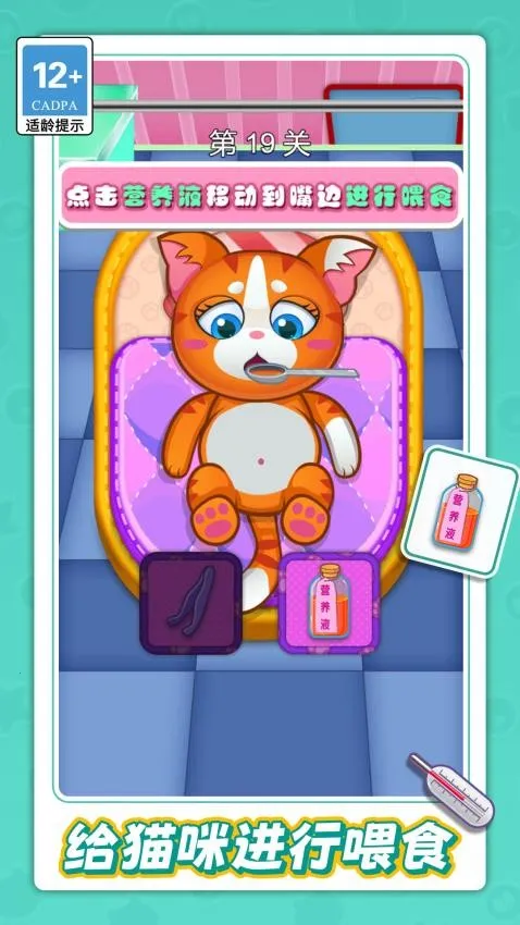 游戏提供丰富多样的照顾关卡,如喂食、清洁等,能让你体验更多挑战乐趣,逐步解锁必要道具,轻松处理各种情况。