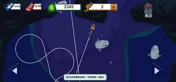4. 自由操控:鱼钩可手动控制,抛竿进入海底界面,还能灵活改变攻击方向,增添操作乐趣。