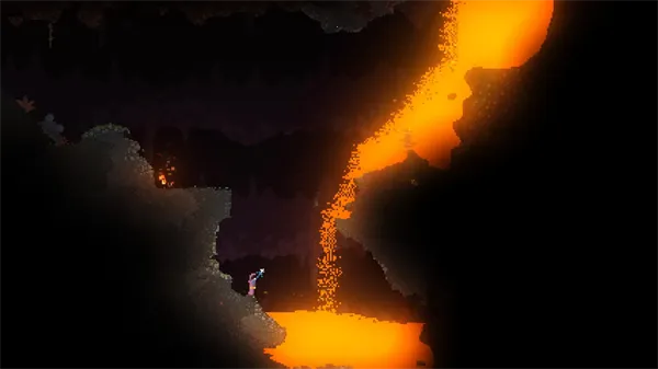 像素物理模拟:游戏中每个像素都具备物理属性,一切皆可燃烧、爆炸或融化。像液体会顺坡流淌,水中存在阻力,不同液体可分层,油和木制品能燃烧,火花四溅还会引燃其他物品,岩浆高温可侵蚀物体,遇水凝固成石头。这种高度物理模拟为游戏带来丰富可能性与不可预测性。