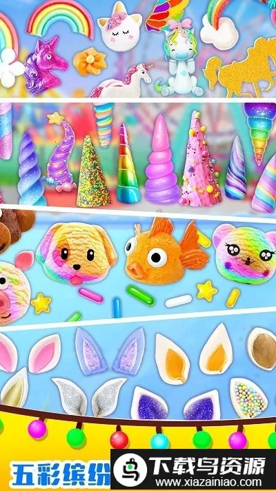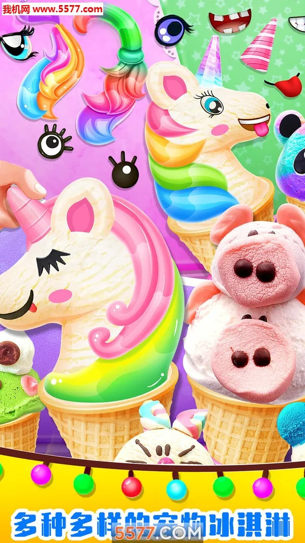 1. 提供大量独角兽造型的装饰配件,能让你的创作独一无二,打造专属美味独角兽冰淇淋。