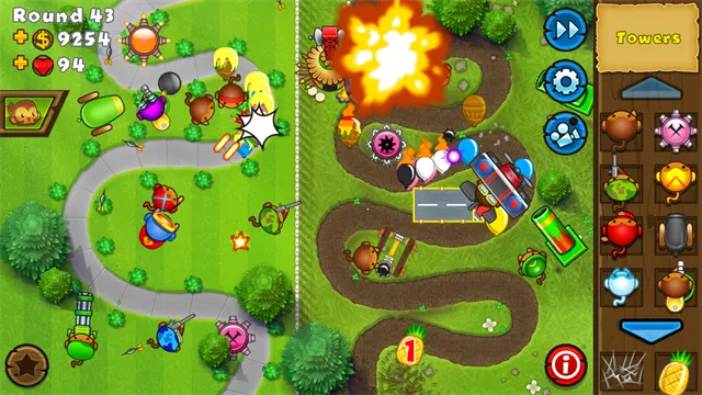 1. 丰富多样的炮塔:游戏内拥有多达数十种防御塔,像飞镖猴、图钉塔、狙击手猴等,每个炮塔都有独特的攻击方式和升级路线。例如飞镖猴射程中等,射速普通,升级后能增加射程、改变攻击数量等;图钉塔可增加射速、改变发射物等。玩家能依据不同需求和策略来选择和升级炮塔,体验丰富多样的塔防乐趣。