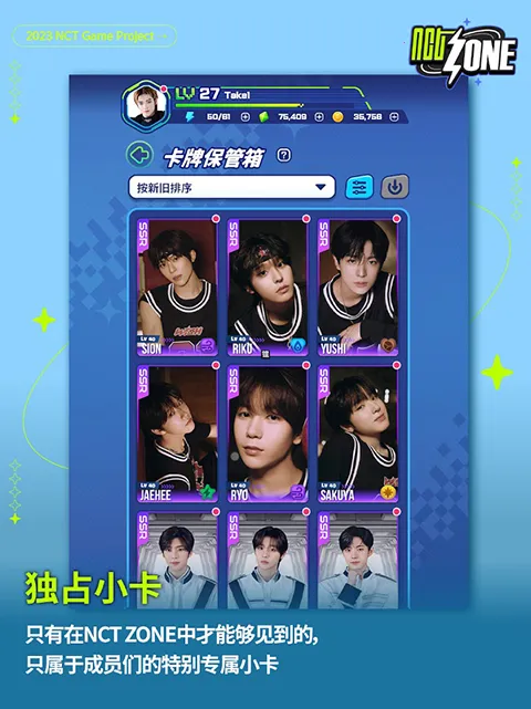 NCT ZONE2026是一款官方正版授权的偶像互动手游,融合养成、卡牌收集等玩法。玩家扮演经纪人培养NCT成员,通过消消乐闯关、抽卡解锁剧情与专属故事,还能自由定制NEOZONE,与成员亲密互动。