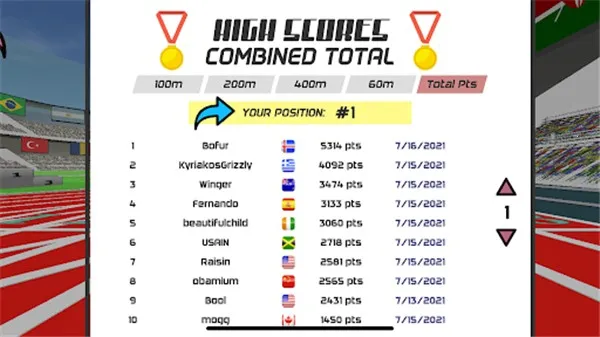 精美画面:搭配精美细腻的游戏画面,让玩家仿佛置身于真实的田径赛场之中,带来沉浸式体验。