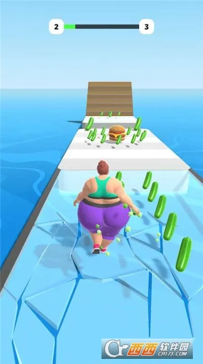 1. 以减肥为主题,玩法独特。操作肥胖人物跑酷闯关,吃黄瓜变瘦,吃汉堡变胖,趣味性十足。