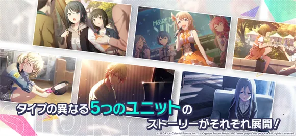 1、丰富角色与精彩剧情:邂逅各种人气虚拟角色歌手,跟随五组热爱音乐的少年少女们,在现实与虚拟世界穿梭,体验精彩故事。